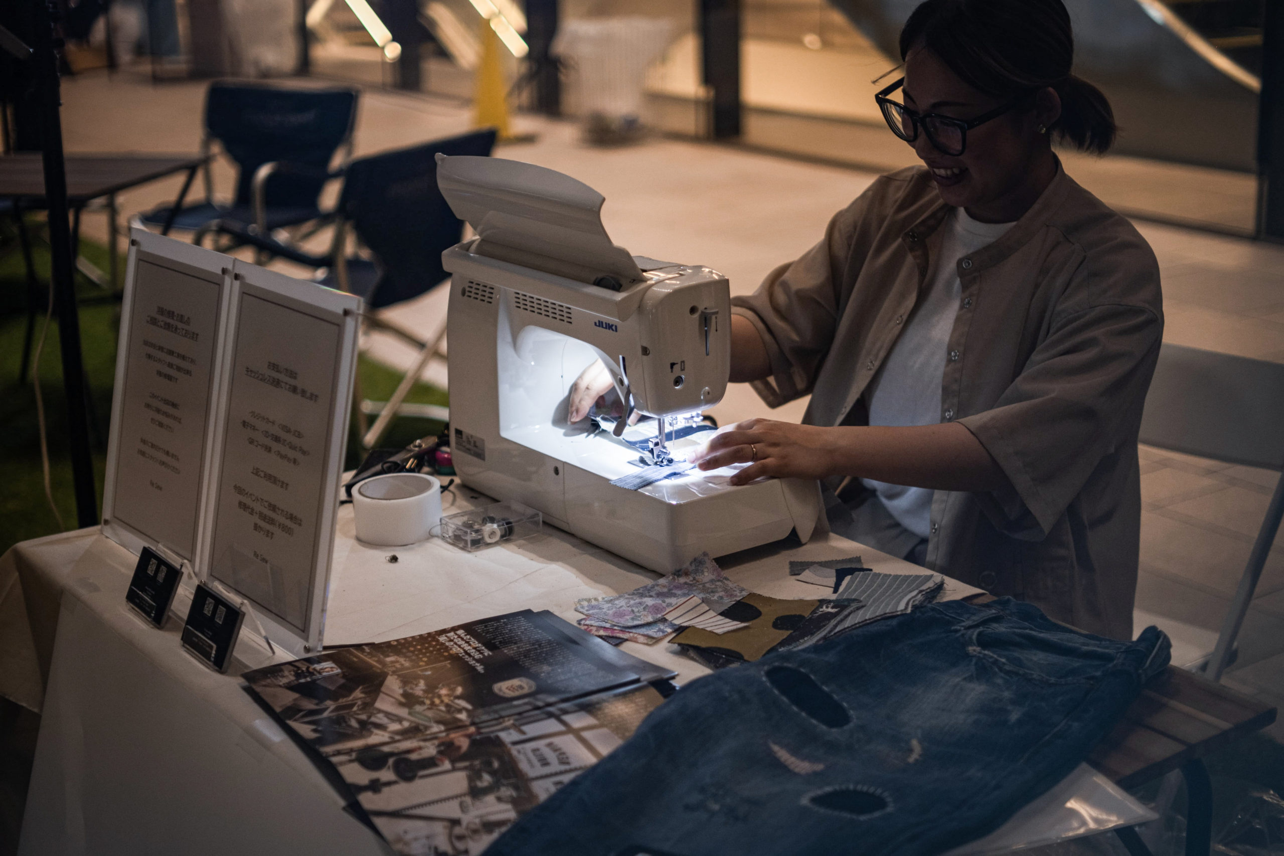 また、洋服の修理をはじめ、リメイクやカスタムを通じて環境問題にも取り組む修理工房「ReSew(リソウ)」は、その高い技術力と仕上げの美しさで依頼が絶えない工房。とはいえ、こういう機会でもなければ、いざ手持ちの服を生まれ変わらせたいと思っても、どんなサービスがあるのか分からなかったり、ある程度分かっていないとうまく質問できなかったりするので、今回のようなイベントの中で、職人さんと気軽に話せるのは有難い機会でした。そして、自分と時間を共にしてきた服がどのように生まれ変わるのか、待つ楽しみもあるのもポイントです。