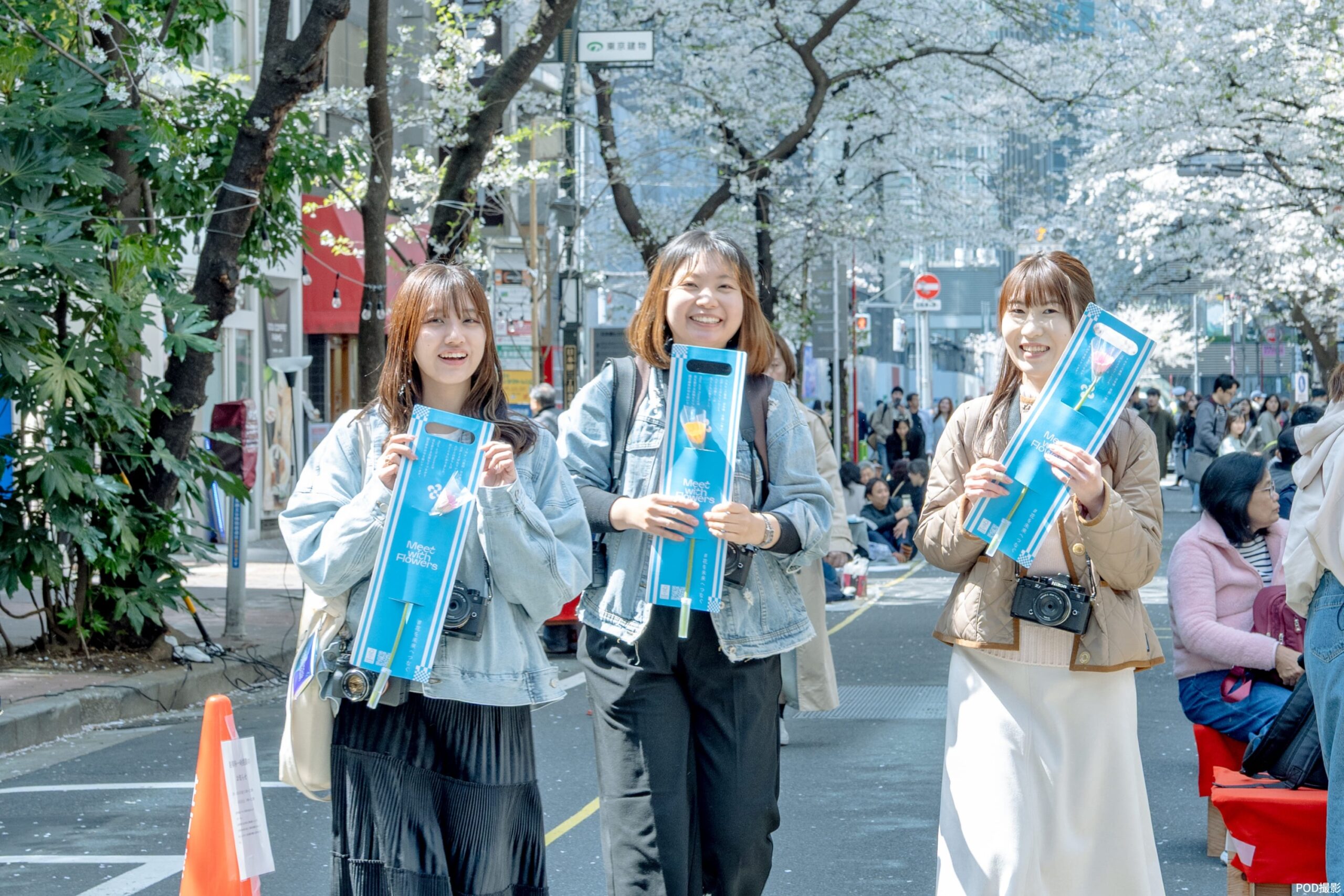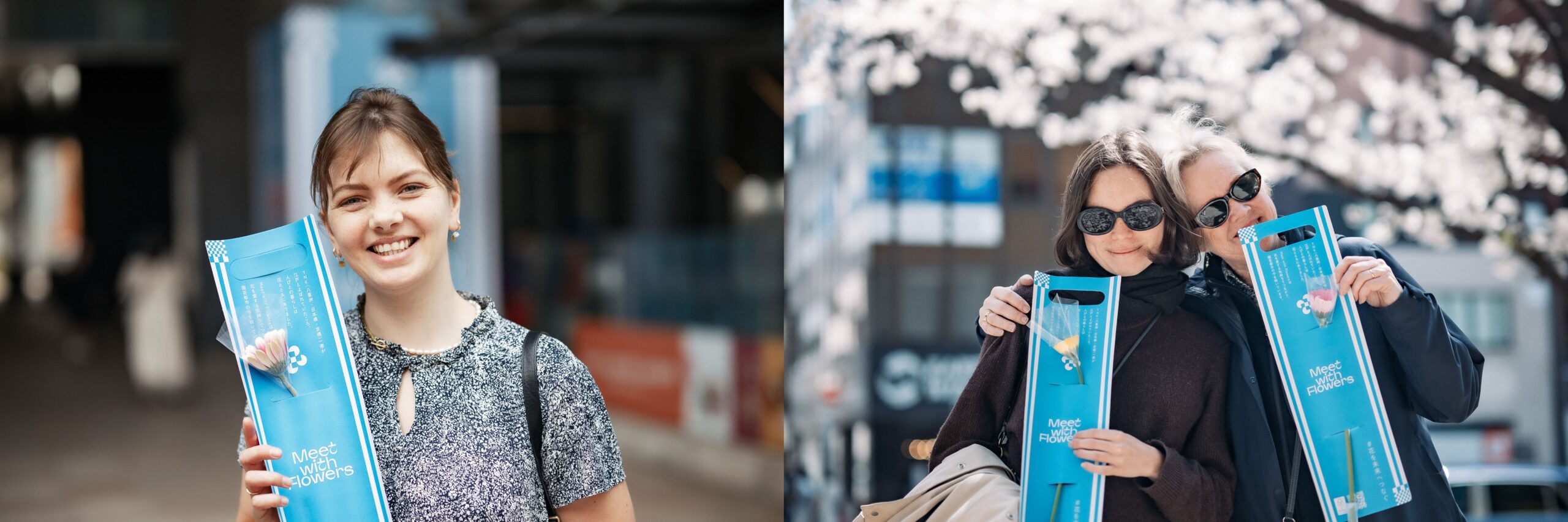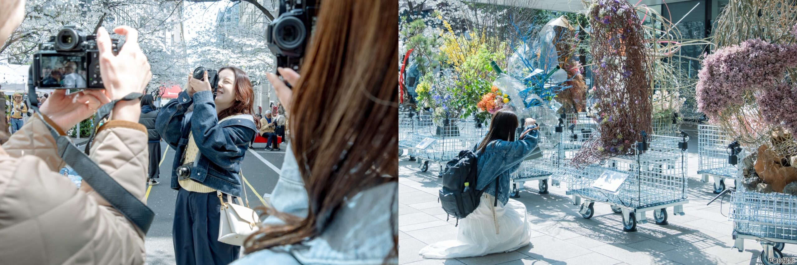 個展と併せて開催された小春氏と一緒に街を歩きながら写真を撮り歩くイベント「彩りを楽しむ、お花フォトウォーク」では、Meet with Flowersのフラワーオブジェ以外にも、YNKエリアにある桜スポットや、中央通りで20年以上、老舗や企業の皆様の協力のもと運営している「NPO法人はな街道」の花壇にも立ち寄り、花の姿とともにその日その瞬間の幸せな感情を写真に残しました。