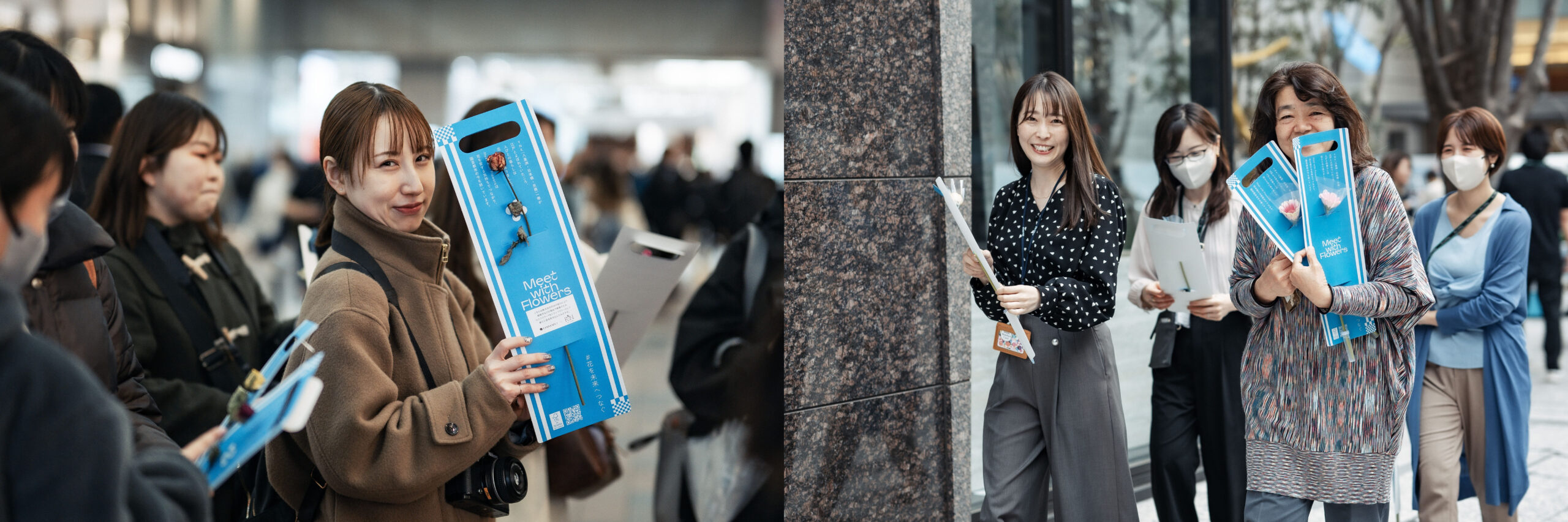 実は、切り花への一般家庭の出費は年々減少傾向にあるそうです。Meet with Flowersがスタート時から変わらずに大切にしているコンテンツに、YNKエリア各所で花を無償で配るプロジェクト「Send Flowers」があります。今年は約1万本の花が用意されました。このプロジェクトをきっかけに、たとえ1本でもそこにあるだけで心を和ませてくれる花の価値に、改めて気づいた人も多いのではないでしょうか。