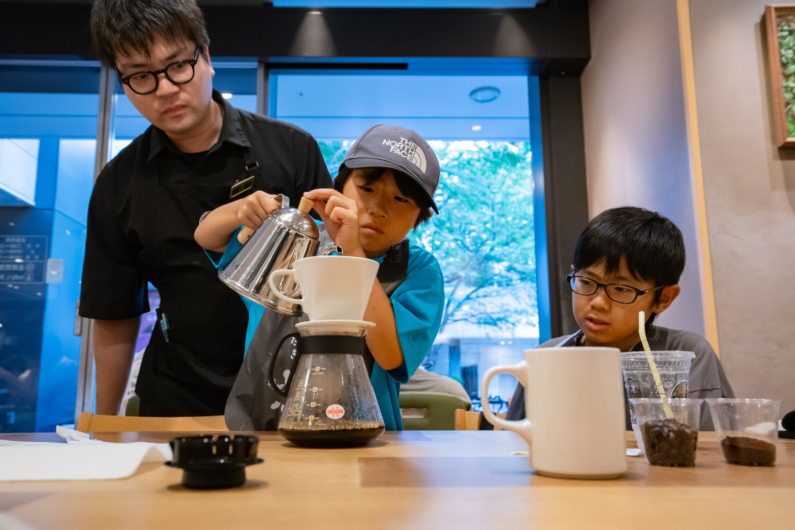 TULLY’S COFFEEで行われていたのは「親子コーヒースクール」。スタートからこども達は「わー!コーヒー豆を初めて見た」「これがコーヒーになるの?」など、目の前に置かれたコーヒー豆に興味津々。親子でコーヒーについて学び、最後には自分たちでドリップしたコーヒーを試飲。一緒に参加していたお父さんも「コーヒーを淹れる体験もできたし、コーヒー豆ももらえ、学ぶこともが多かったです」と一緒に楽しみながら学ぶことができたと話してくださいました。