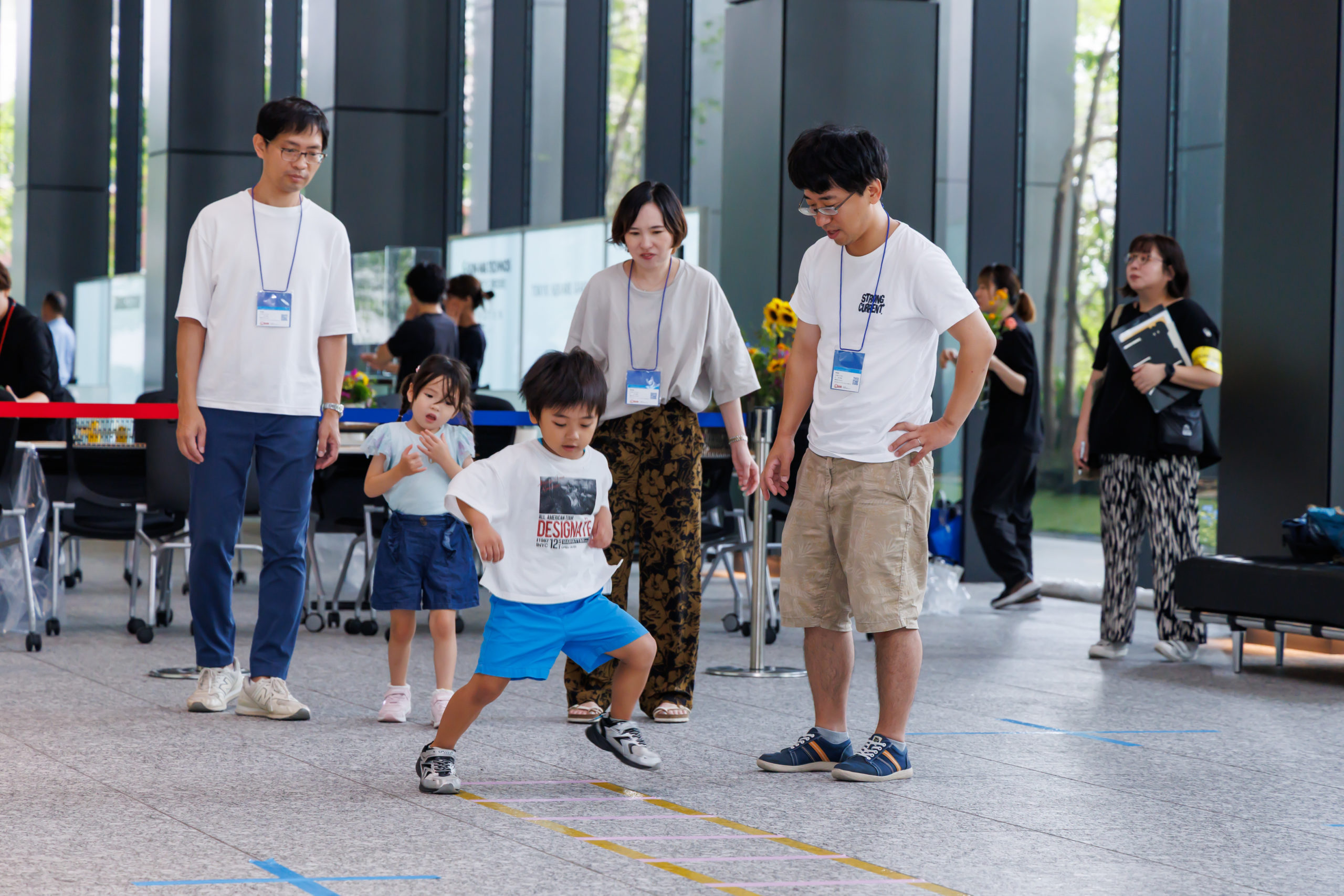 施設内では同日に入居企業がファミリーデーを開催し、各所でこども達の楽しそうな笑い声が上がっていました。