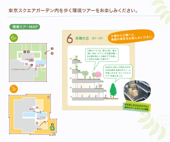 地下1階~5階までの低層部に、広さ約3,000m2もの緑あふれる丘をつくりました。